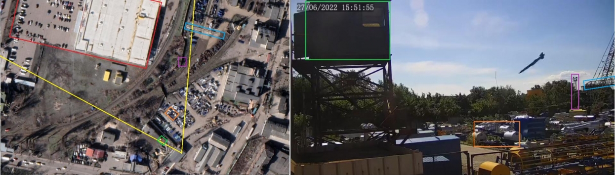 D'autres images de caméras de surveillance des environs montrent les deux impacts de missiles depuis le parc Mis'ky, situé au nord du site de l'usine. Les images ont été fournies à l'AFP par le gérant du parc. Celui-ci se trouve à environ 530 mètres au nord du centre commercial, et à proximité immédiate du site de l'usine.