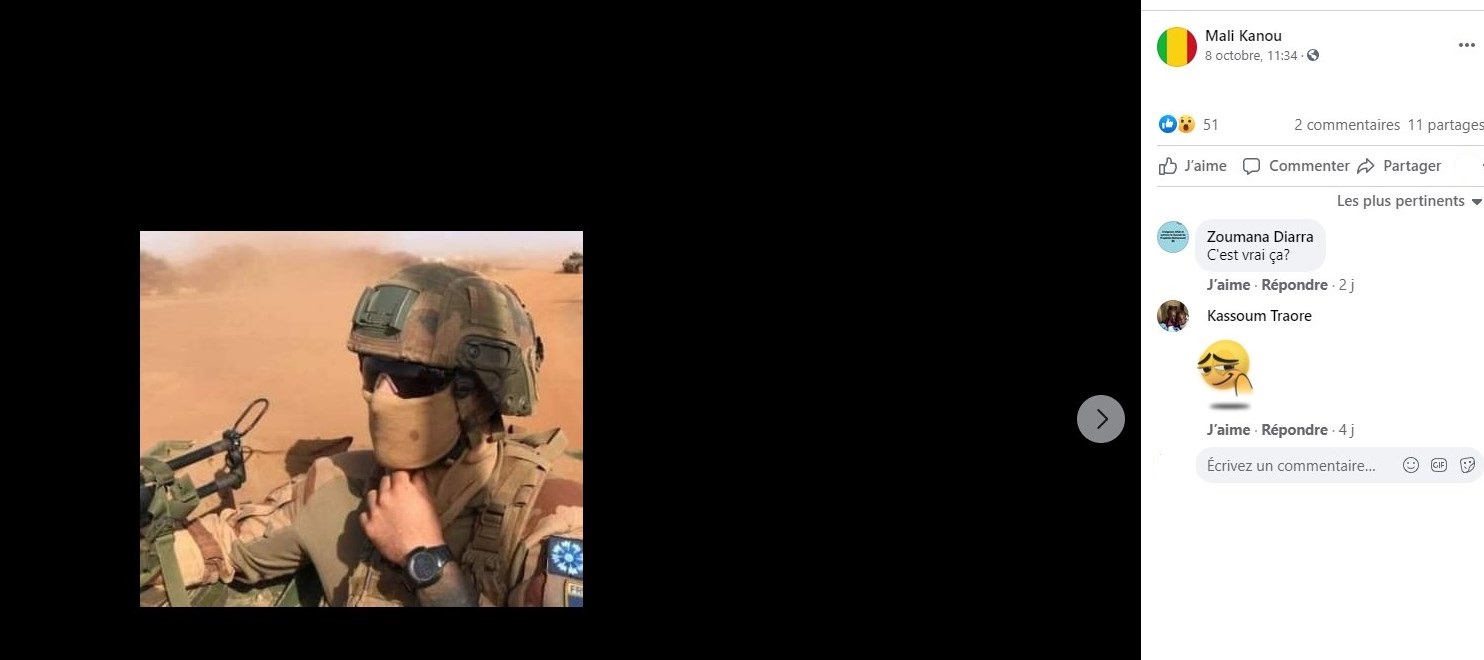 Contacté le 12 octobre 2021, l’Etat-major français lui aussi dément l’interpellation au Mali d’un membre de l’opération Barkhane. "Il ne s'agit en aucun cas d'un militaire français de la force Barkhane", affirme le service de communication de l’état-major français.