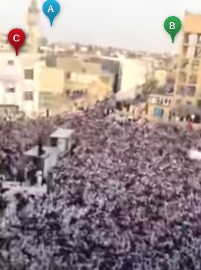 En effectuant une recherche de la ville d'Al-Qatif, en Arabie saoudite, dans Google Maps, il est possible de retrouver l'emplacement exact d'où a été filmée la vidéo. Plusieurs indices sont reconnaissables, comme le montre la comparaison ci-dessous entre la vidéo filmée en 2014 à gauche, et la place visible sur Google Maps.