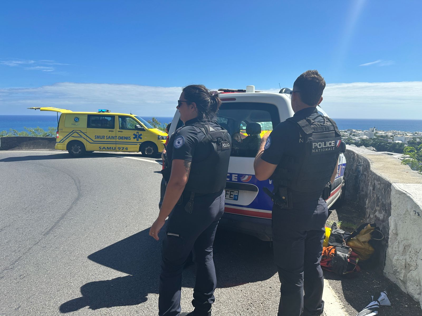 (Actualisé) Ce mercredi 11 février 2026, un motard circulant sur la route de la Montagne a terminé sa course dans le ravin. Selon nos informations, le pilote du deux-roues aurait perdu le contrôle de sa moto lors du dernier virage en descendant vers Saint-Denis. Il a ensuite chuté de plus de 10 mètres. Blessé, le motard a été hélitreuillé par les équipes du Peloton de gendarmerie de haute montagne (PGHM) (Photo : Police de La Réunion)