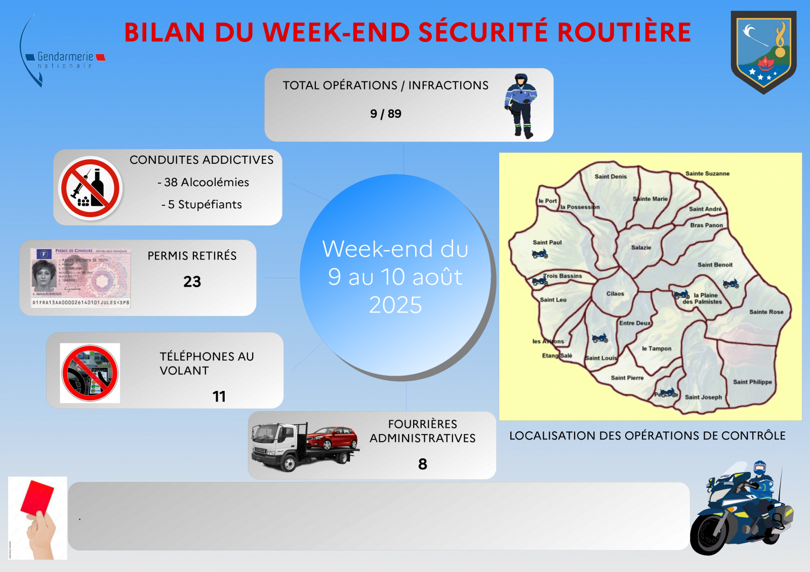 Les gendarmes ont effectué neuf opérations de contrôles routiers au cours de ce week-end du vendredi 8 aoput au dimanche 10 août 2025. Ils ont relevé 89 infractions et ont retiré 23 permis (Photo Sly/www.imazpress.com)