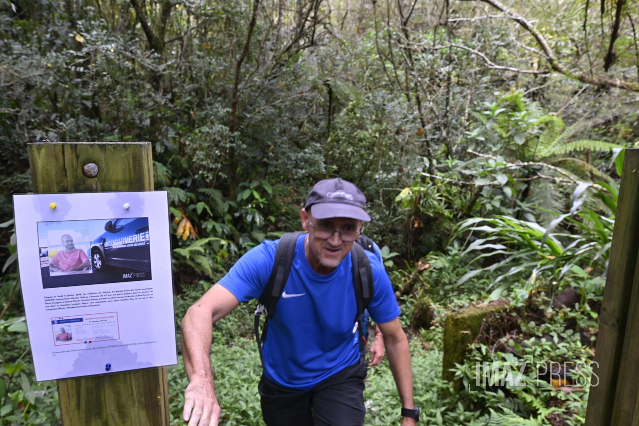 (Actualisé)Depuis le lundi 5 janvier 2026, Nicolas Aulezy, 47 ans, est porté disparu à Sainte-Marie. Ce samedi 17 janvier, de nombreuses personnes se sont rassemblées dans le secteur de Piton Fougère pour une battue avec un objectif, le retrouver. Sa famille a fait le déplacement jusqu'à La Réunion pour poursuivre les recherches avec les proches et les collègues du randonneur, aidés par les équipes du Peloton de gendarmerie de haute montagne (PGHM) (Photo : eg/www.imazpress.com)