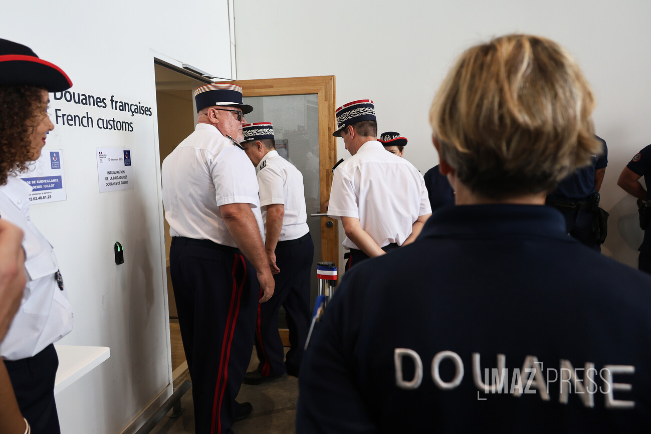 Les nouveaux locaux de la Brigade de surveillance extérieure (BSE) des douanes de Saint-Denis–Gillot ont été officiellement inaugurés ce vendredi 12 décembre 2025 par Gil Lorenzo, directeur général adjoint des douanes. Une inauguration qui intervient dans un contexte de forte hausse du trafic aérien - 228 kg de stupéfiants ont été déjà saisis en 2025 -, et de montée en puissance des missions de contrôle (Photos sly/www.imazpress.com)