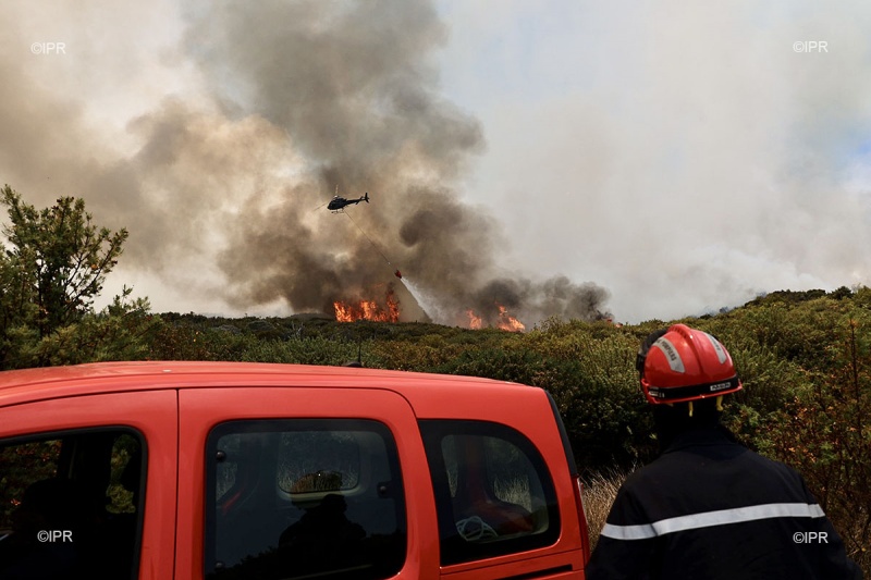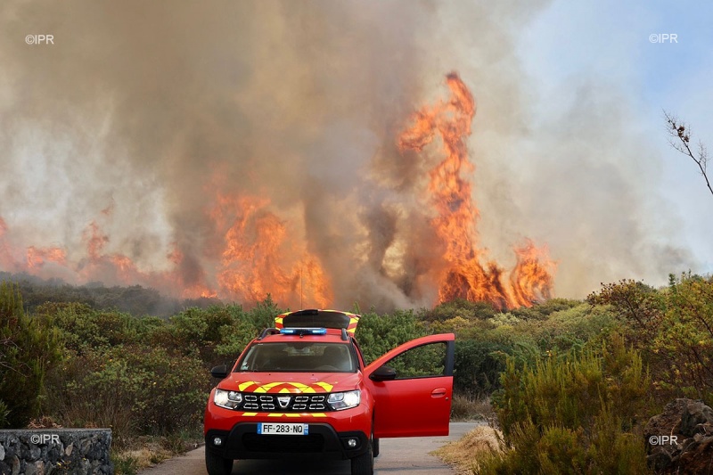 "Actuellement on tente de contenir le feu au niveau de la piste à l'aide des hélicoptères, et on a disposé des engins pour enrayer toute propagation si le vent se lève" explique le lieutenant-colonel Henri Claude Pothin, conseiller technique feux de forêt au SDIS.