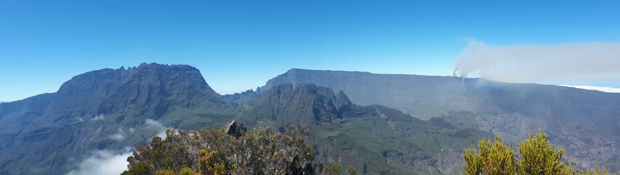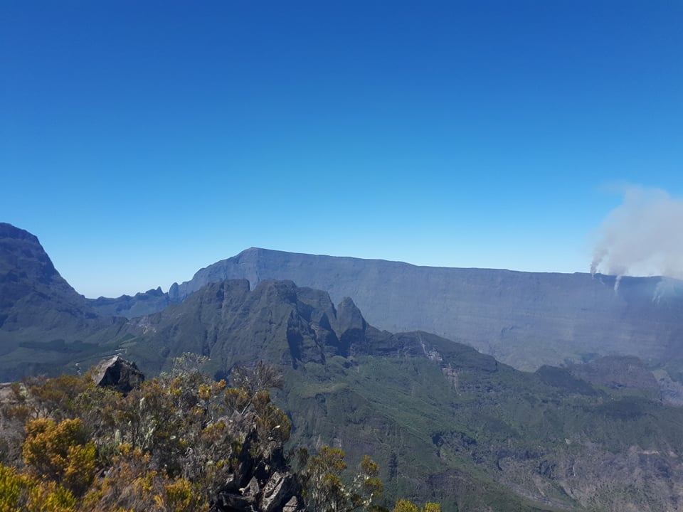 Une internaute partie escalader le sommet du Cimendef nous transmet ses photos : l'incendie du Maïdo est bien visible depuis là-haut.