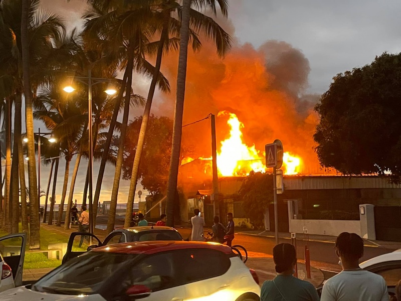 Un incendie s'est déclaré dans le restaurant Kaloupilé, anciennement appelé Le Boucané, à La Possession, près du parking de l'église et de la mairie. Les pompiers sont à pied d'oeuvre. La circulation a été déviée dans un premier temps au niveau de la bretelle d'accès à l'hôtel de ville, mais elle est désormais rétablie et il n'y a pas de bouchons dans la zone. (Photo : Guy Martins / radar 974)