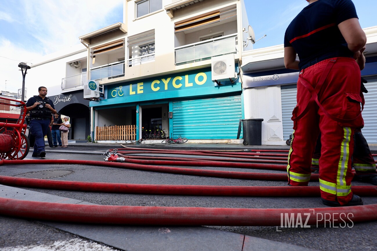 Ce samedi 31 janvier, un incendie s'est déclaré dans un magasin de vélos plein centre-ville, rue Saint-Paul. Les sapeurs-pompiers sont toujours sur place. Selon nos informations, une trottinette électrique aurait pris feu. Un périmètre de sécurité a été mis en place par les forces de l’ordre (Photos : sly/www.imazpress.com)