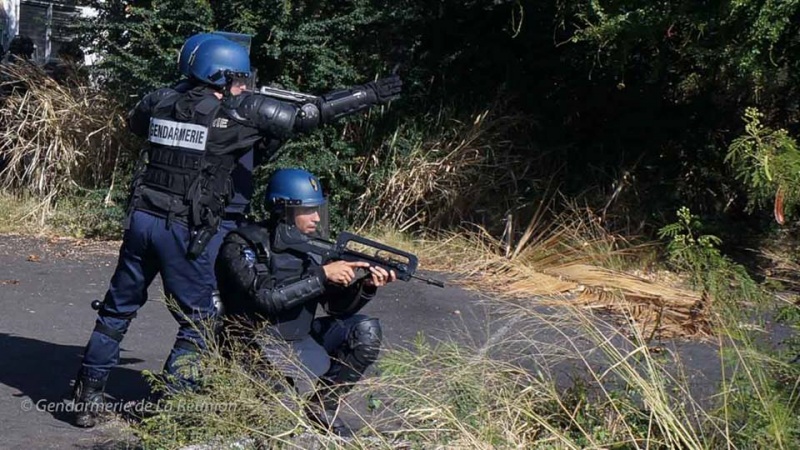 Les gendarmes de l'intervention spécialisée (GPI) et leurs collègues de Troyes qui font partie de l'escadron déplacé actuellement en poste à La Réunion, ont procédé à plusieurs opérations dans le cadre d'un exercice tout au long de la semaine du lundi 7 septembre au dimanche 13 septembre 2015. Des simulations de maintien de l'ordre dans le cas de violences urbaines ont ainsi notamment eu lieu.