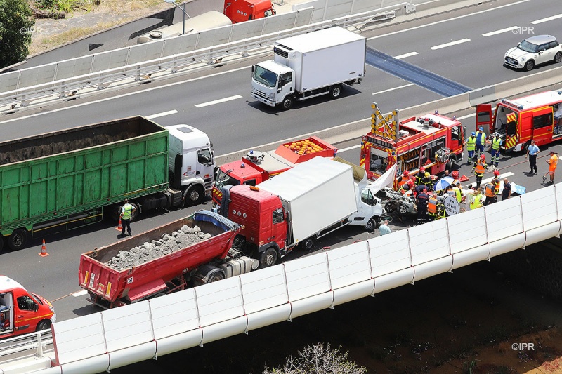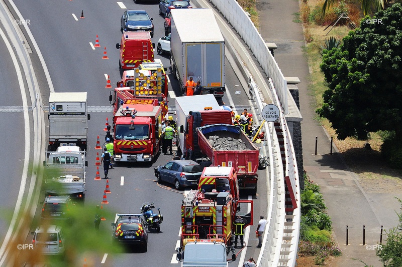 Le pire est arrivé ce lundi matin 6 novembre 2017 sur le viaduc de Saint-Paul presque à la sortie de la route des Tamarins dans le sens Saint-Gilles - Saint-Paul. Transportant des galets, un poids lourd a lancé ces 42 tonnes sur un camion frigorifique le projetant violemment sur une petite Twingo. La jeune conductrice de la voiture légère a été tuée. Elle avait 20 ans. Elle était étudiante comme sa passagère de 23 ans qui est grièvement blessée. Selon les premiers éléments d'information, la vitesse serait à l'origine de ce drame. Le chauffeur du poids lourd a été placé en garde à vue lundi après-midi. Il aurait indiqué que son camion n'avait plus de frein