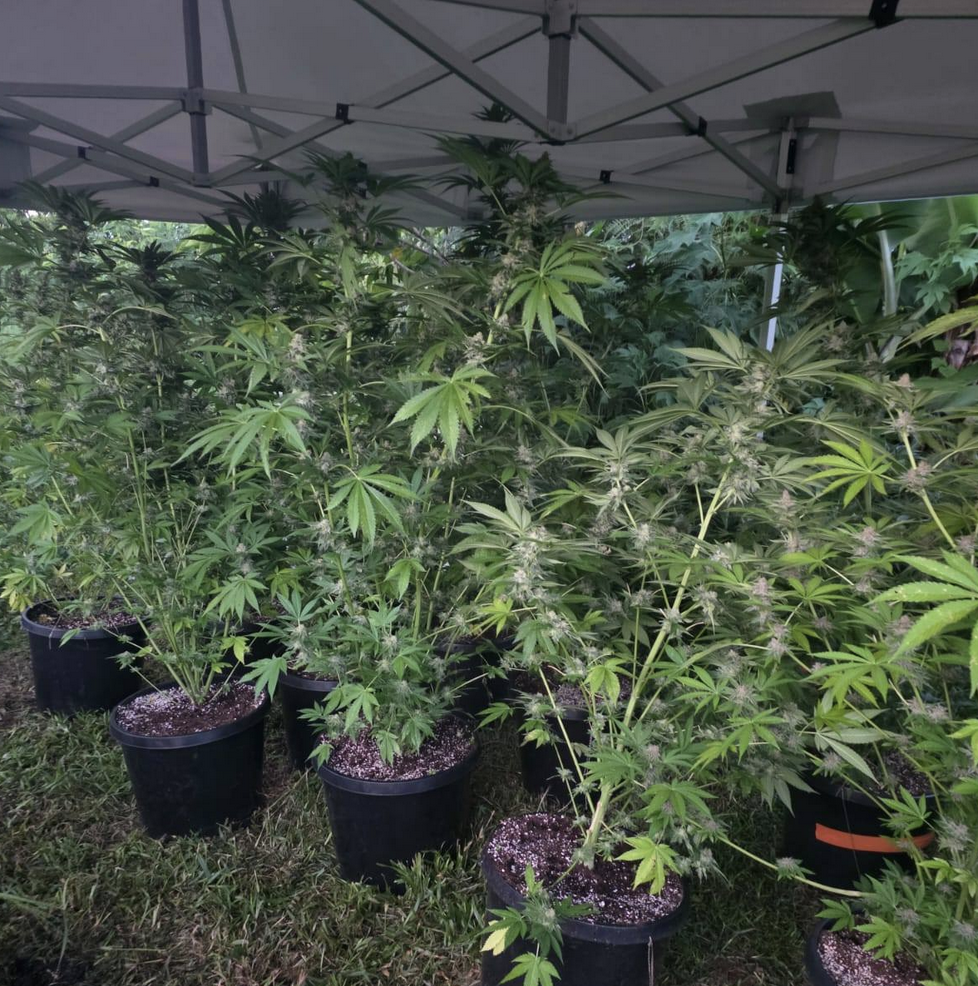 À Saint-Denis, le 30 mars 2026, 70 pieds de cannabis, soit plus de 20 kilos de produit illicite ont été découverts par le Service territorial de police judiciaire, avec le soutien du RAID et de la BAC Territoriale. Quatre personnes ont été interpellées. À l'issue de leurs auditions, deux ont été laissées libres et deux ont été présentées au tribunal judiciaire. Les deux personnes ont écopé d'une convocation devant un officier de police judiciaire pour l'un et d'une comparution sur reconnaissance préalable de culpabilité pour l'autre (Photo : Police de La Réunion)