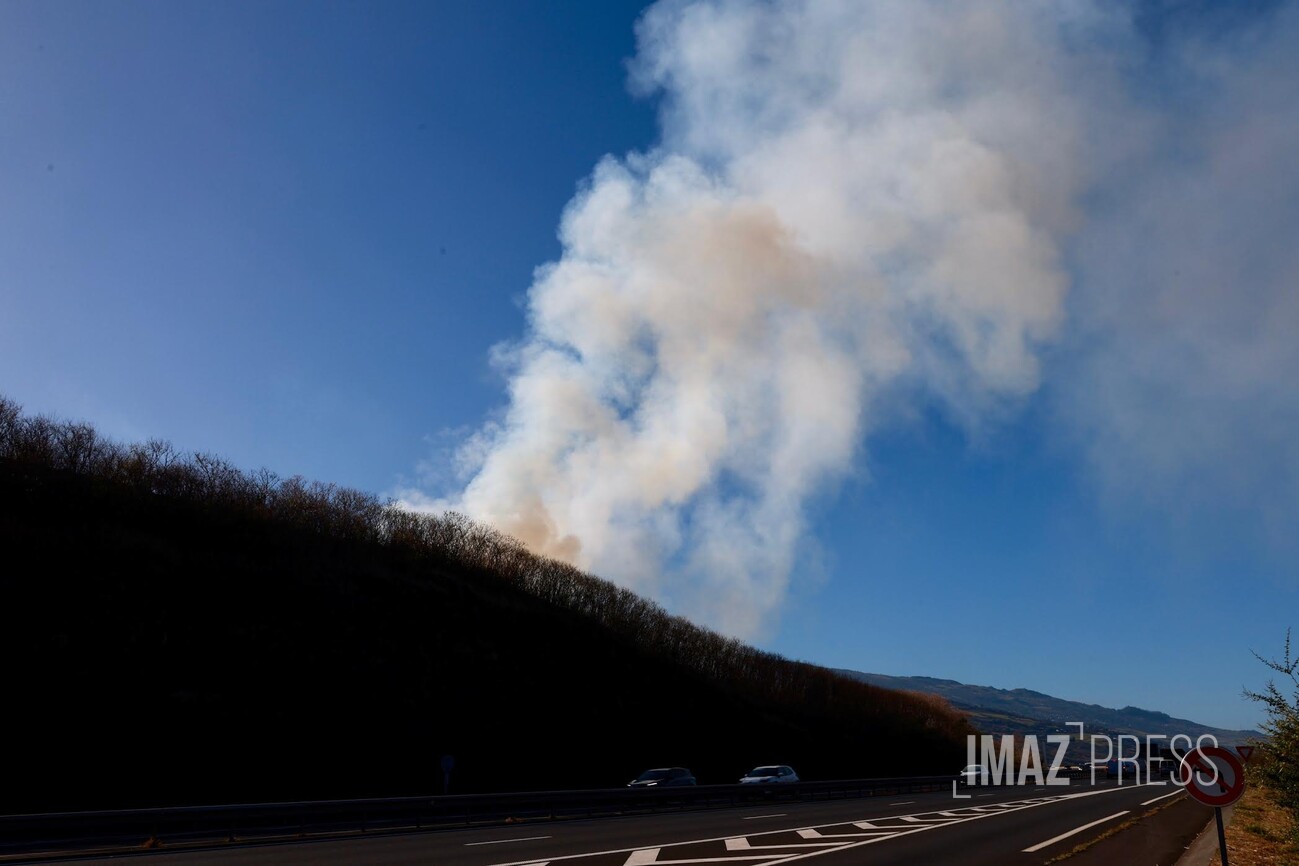 Un gros panache de fumée est visible le long de la route des Tamarins. Regardez