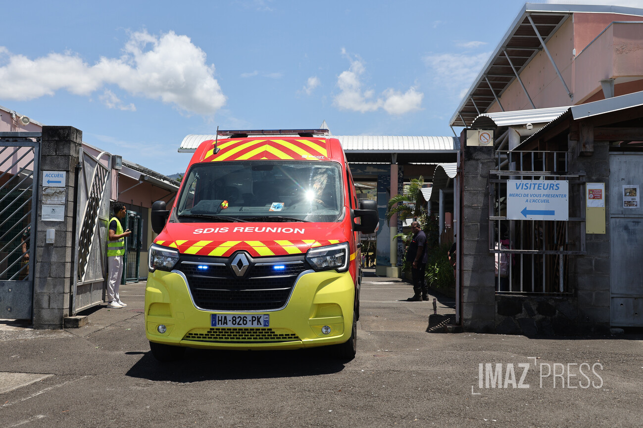 (Actualisé) Le principal adjoint, Pablo Zephir, informe que les cours sont suspendus pour le reste de la journée. Dans la matinée, une odeur inhabituelle a entraîné l’intervention des gendarmes et des pompiers ce jeudi matin 20 novembre 2025 au collège Jean-Lafosse, à Saint-Louis. L’origine d'une éventuelle fuite n’est pas encore identifiée. Plusieurs personnes sont incommodées. L'établissement est évacué. IL est encore trop tôt pour dire si les cours reprendront demain (photo sly/www.imazpress.com)