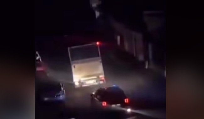 N'arrivant pas à repartir, il abandonne le camion et tente de s'enfuir, avant d'être rapidement interpellé. Regardez.