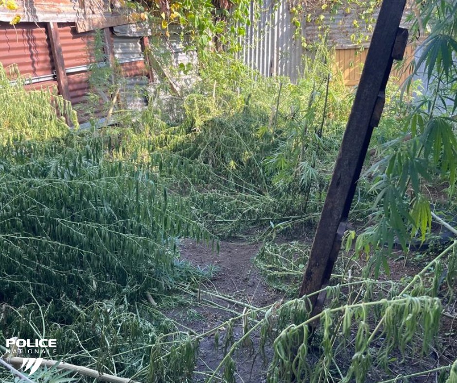 Ce dimanche 12 avril 2026, les forces de l'ordre de Saint-Pierre étaient appelées pour un différend entre deux personnes au sujet de plants de cannabis arrachés, explique la police nationale. Sur place, les policiers découvrent une véritable culture de cannabis de grande ampleur, avec plus de 370 pieds. "Le propriétaire de ces plants était placé en garde à vue, la perquisition permettait de découvrir 376 pieds de cannabis, allant jusqu’à 2 mètres 50 de hauteur pour certains, de l'herbe et des graines de cannabis", affirme la police. (Photos : Police Nationale)
