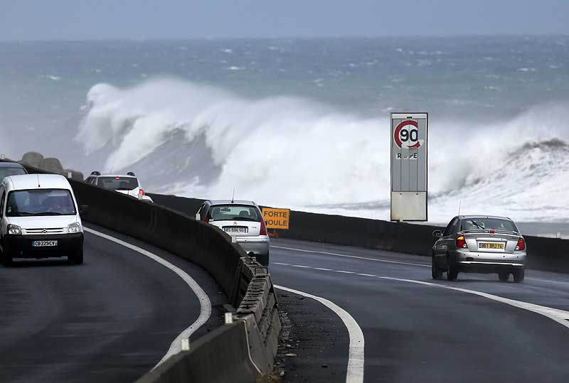 Un peu plus tôt, selon Réunion Première Radio, au moins deux véhicules, dont un 4x4 ont subi de gros dégâts après qu'une vague se soit écrasée sur eux dans le sens Saint-Denis/La Possession, juste avant La Grande Chaloupe. Leur pare-brise avait été brisé par la force de la houle.