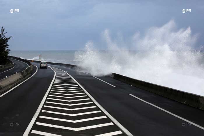 La fermeture de la route du littoral était annoncée dans un premier temps à 15 heures. Elle sera finalement avancée au plus tard à 14 heures. En cause : les paquets de mer qui se fracassent sur les voies de la chaussée côté mer.