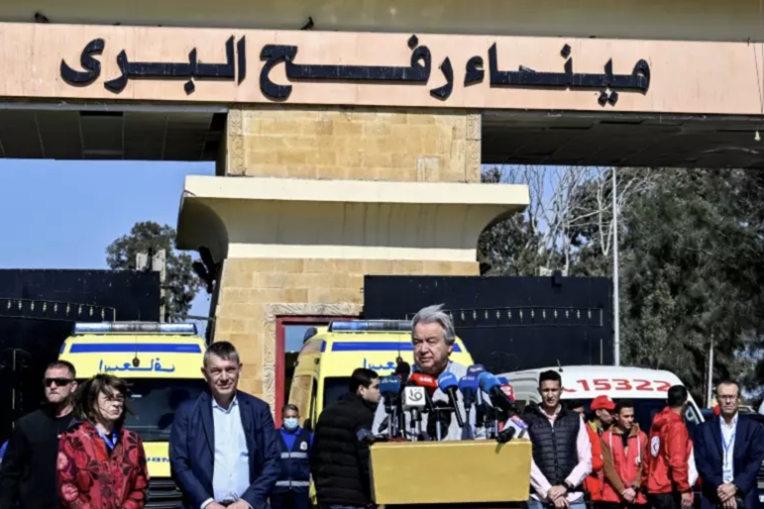 Après plus de cinq mois d'une guerre dévastatrice déclenchée le 7 octobre par une attaque meurtrière du Hamas contre Israël, M. Guterres s'est rendu côté égyptien de Rafah dont une partie se trouve dans le sud de la bande de Gaza assiégée, pour a-t-il dit attirer l'attention sur la "douleur" des Palestiniens, prisonniers d'"un cauchemar sans fin".