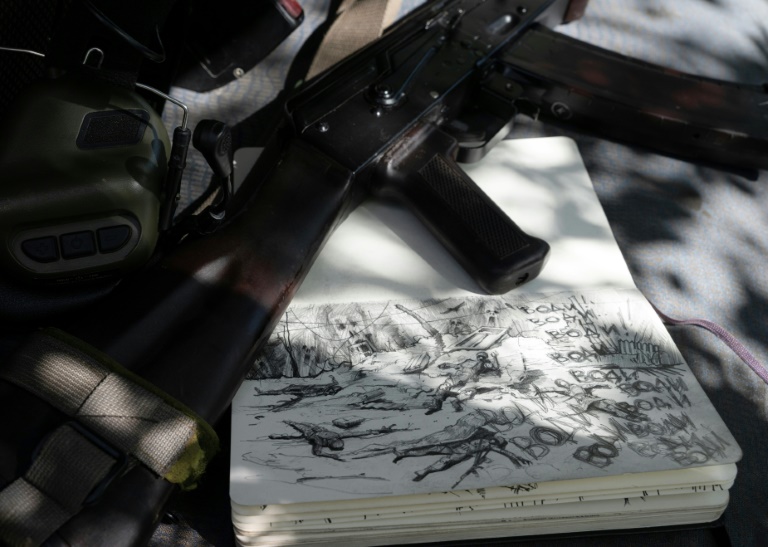 A l'invasion russe de l'Ukraine, AndriĂŻ se porte volontaire pour combattre et devient mitrailleur puis pilote de drone. Et "pour ne pas devenir fou", cet architecte se met Ă dessiner les horreurs de la guerre.