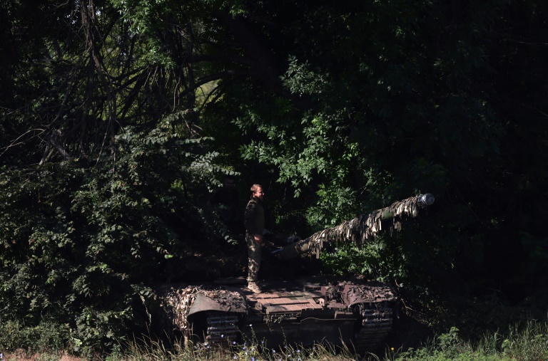 A moins de 2 km des positions russes, Massik, 27 ans, un pilote de drone, est caché à l'ombre d'arbres dans une courte tranchée. Au dessus de lui dans le ciel bleu, des projectiles sifflent et se croisent régulièrement, tirés à distance depuis des positions d'artillerie de chaque camp.