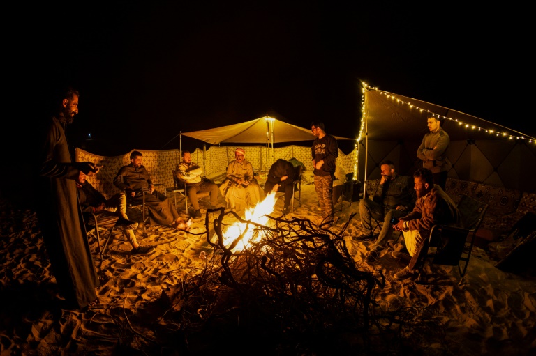 Au milieu des dunes de sable, ils ont planté leurs tentes avant de se réchauffer autour d'un feu de camp. Dans le désert d'Irak, camping et randonnées tout-terrain attirent de plus en plus d'amateurs, fuyant la pollution et le fracas des villes.