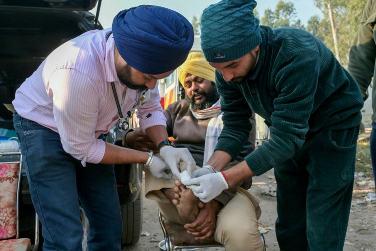 L'usage par les policiers de canons à eau et de grenades lacrymogÚnes a incité Mandeep Singh, un médecin du district d'Hoshiarpur (Pendjab), à proposer ses services avec un hÎpital de fortune.