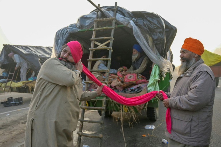 Installés à bord de leurs tracteurs, des agriculteurs indiens qui veulent manifester attendent jeudi des ordres de leurs syndicats pour avancer vers New Delhi et jurent de rester plus longtemps que les policiers qui les bloquent.