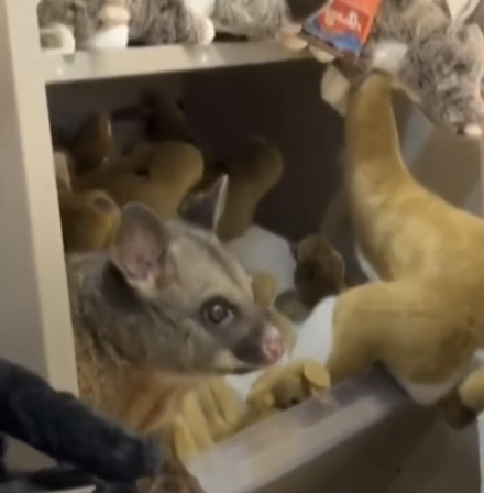 Une peluche plus vraie que nature s’est glissée dans une boutique de l’aéroport de Hobart en Tasmanie (Australie). Une vidéo, partagée sur les réseaux sociaux, montre cet opossum sauvage perché sur une étagère, se confondant avec les kangourous et les ours en peluche d’une boutique de souvenirs, à la plus grande surprise des voyageurs.