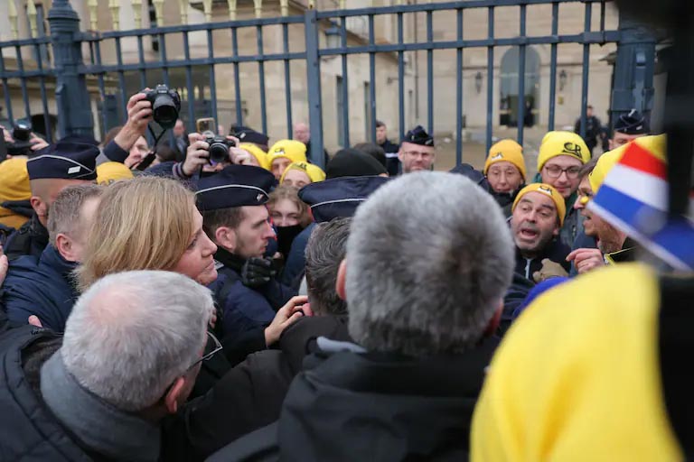 La présidente de l’Assemblée nationale, Yaël Braun-Pivet, a été prise à partie au moment d’aller à la rencontre des agriculteurs rassemblés à Paris aux alentours du Palais Bourbon pour manifester leur colère, annonçant des rencontres avec les organisations syndicales dans la journée, ont constaté des journalistes de l’AFP jeudi. Elle a été huée par les agriculteurs et chahutée par les manifestants qui scandaient "démission".