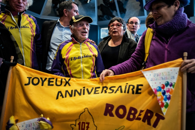 Officiellement en retraite sportive mais visiblement incorrigible, le "super-centenaire" Robert Marchand a fêté lundi ses 107 ans avec une petite balade à vélo sur une voie verte en Ardèche.