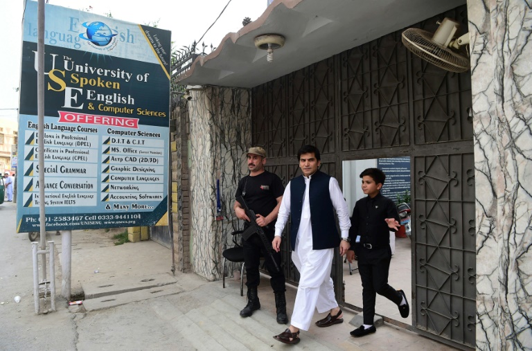 "Utilisez Google et YouTube pour acquérir de la connaissance. Pour leur côté positif, et pas pour regarder des films!", lance-t-il à quelques centaines d'élèves d'une école privée de Peshawar (nord-ouest), l'University of spoken english (Usecs), où lui-même se forme au milieu d'adolescents et de jeunes adultes.