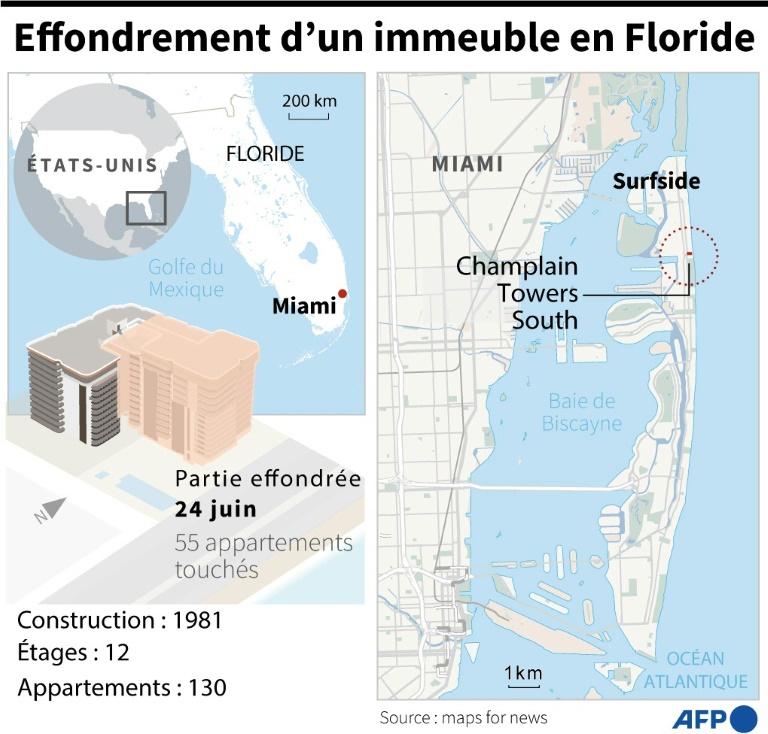 Deux nouveaux corps ont été découverts dans les décombres de l'immeuble effondré en Floride, portant le bilan à 22 morts, avec 126 personnes manquant toujours à l'appel, ont annoncé vendredi les autorités.