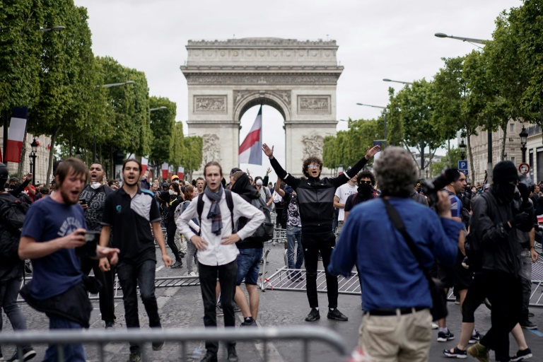 Des dizaines de personnes, dont des "gilets jaunes", manifestaient dimanche après-midi sur les Champs-Elysées dans un face à face tendu avec les forces de l'ordre à l'issue du défilé militaire du 14 juillet, ont constaté des journalistes de l'AFP.