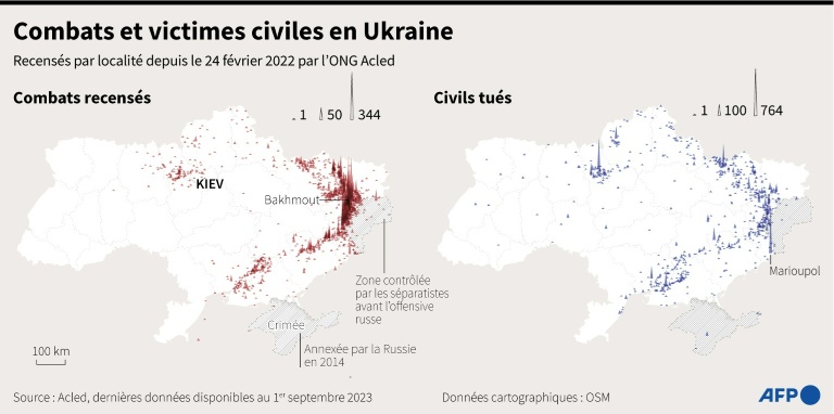 Ce très lourd bilan intervient alors que le secrétaire d'Etat américain Antony Blinken effectue mercredi une visite surprise, sa quatrième en Ukraine depuis le début de l'invasion russe en février 2022.