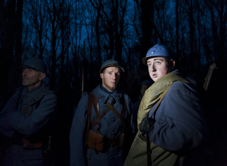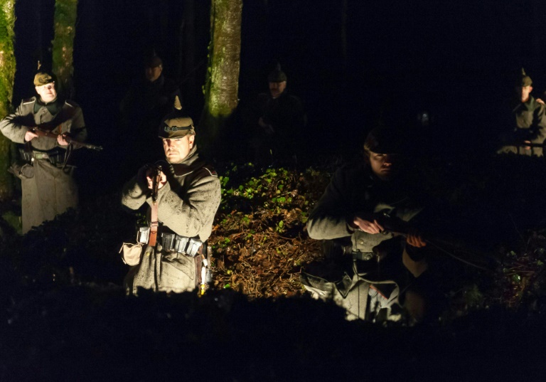 Français en bleu à droite du chemin, allemands en kaki à gauche, éclairés et immobiles, baïonnettes en main: seule de la vapeur s'échappe de la bouche des figurants pendant ces tableaux figés.