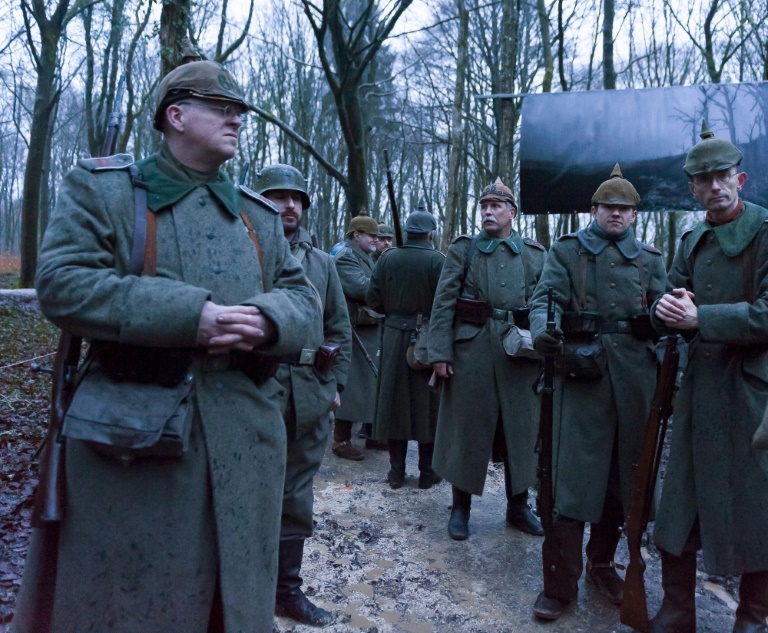 Dès 6h45, quelque 300 personnes se sont rassemblées sous une pluie fine là où tout a commencé, au "bois des Caures", à une quinzaine de kilomètres de Verdun. Sur un petit chemin boueux éclairé à la bougie, bénévoles français et allemands en costumes d'époque ont entamé une marche, lu des documents historiques, évoqué le déluge d'obus.