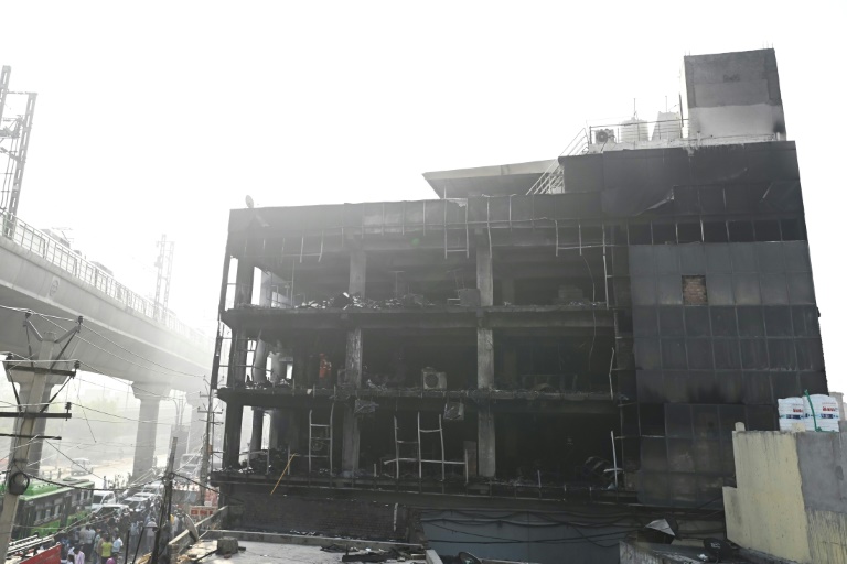 Au moins vingt-sept personnes sont mortes et plusieurs autres ont été victimes de brûlures dans un incendie à New Delhi, survenu vendredi dans un immeuble commercial de la capitale indienne (Photo : AFP).