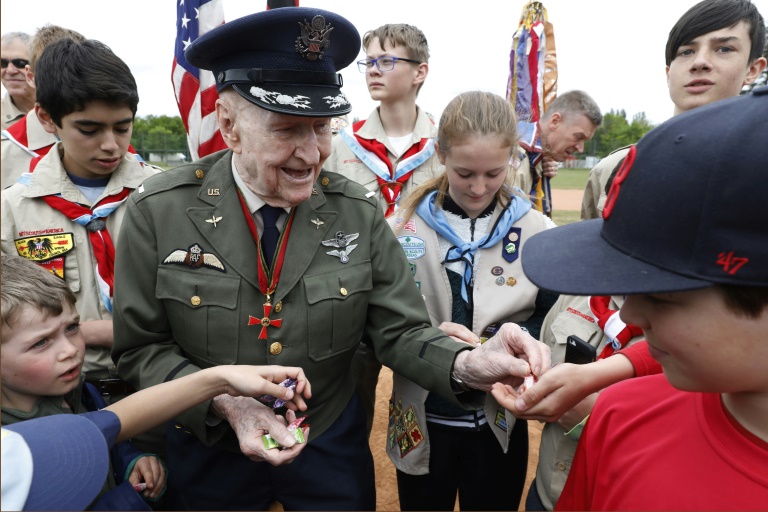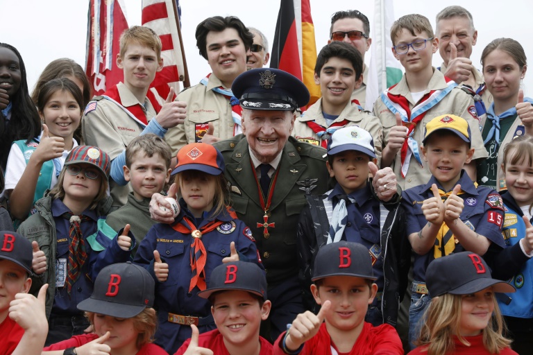 L'ancien aviateur américain de 98 ans, vêtu de son uniforme militaire de l'époque, a fait samedi un retour remarqué à Tempelhof lors d'une première cérémonie en son honneur: sur un terrain de base-ball qui porte désormais son nom et est situé sur le site de l'ancien aéroport.