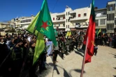 Sur une place de la ville d'Afrine, de jeunes volontaires kurdes munis de fusils s'engagent d'une voix forte à "résister" contre l'offensive turque visant leur région, dans le nord-ouest de la Syrie.