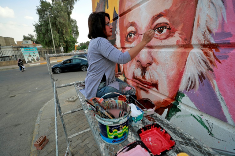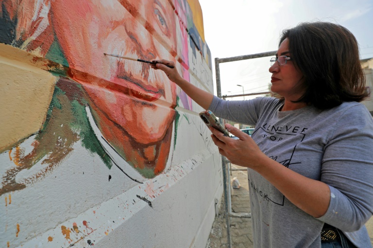 Juchée sur un échafaud au milieu d'un carrefour à Bagdad, Wijdan al-Majed fait danser son pinceau sur une fresque murale. L'artiste irakienne casse les codes dans la capitale ultra-bétonnée avec ses représentations de célébrités irakiennes et étrangères, comme Zaha Hadid ou Mère Teresa.