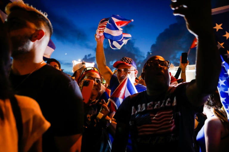 "C'est le moment" qui "va faire tomber le communisme", estimait Humberto Ponce Diaz, un Cubain croisé par l'AFP dimanche soir dans le quartier de "la Petite Havane" à Miami, où près de 5.000 personnes ont brandi des drapeaux des deux pays dans un concert de klaxons.