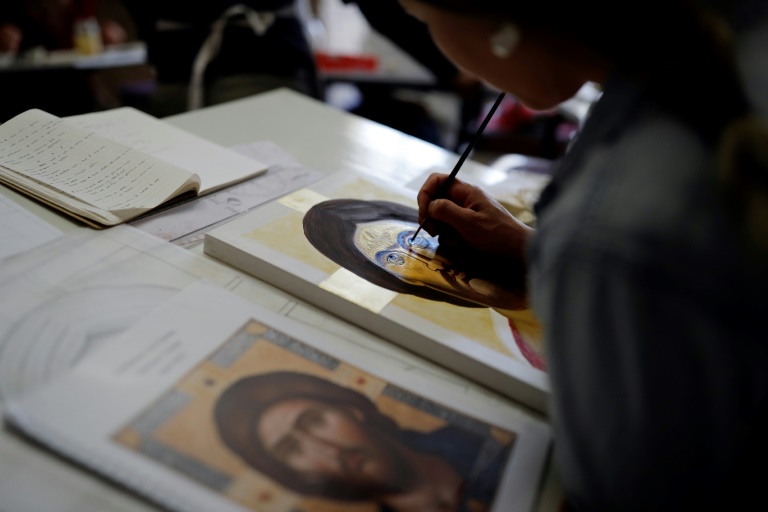 Dans une ruelle de Bethléem, derrière un porche et une volée de marches en pierre, le visiteur est accueilli par l'éclat vif d'une icône dorée baignant dans un rayon de soleil printanier. A quelques pas de l'église de la Nativité, des passionnés font renaître l'art de l'iconographie près de 2.000 ans après sa création à quelques kilomètres de là, à Jérusalem, où les chrétiens célèbrent cette semaine Pâques.