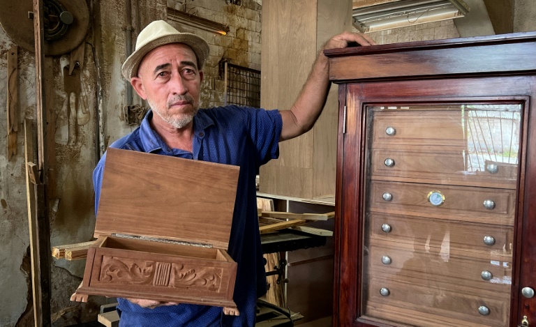 "Les gens n'imagine pas (...) que de telles caves à cigares puissent sortir d'ici", déclare à l'AFP le charpentier de 55 ans, en faisant visiter son atelier du centre de La Havane où s'entassent vieilles poutres, portes et meubles usagés, la matière première de son art.