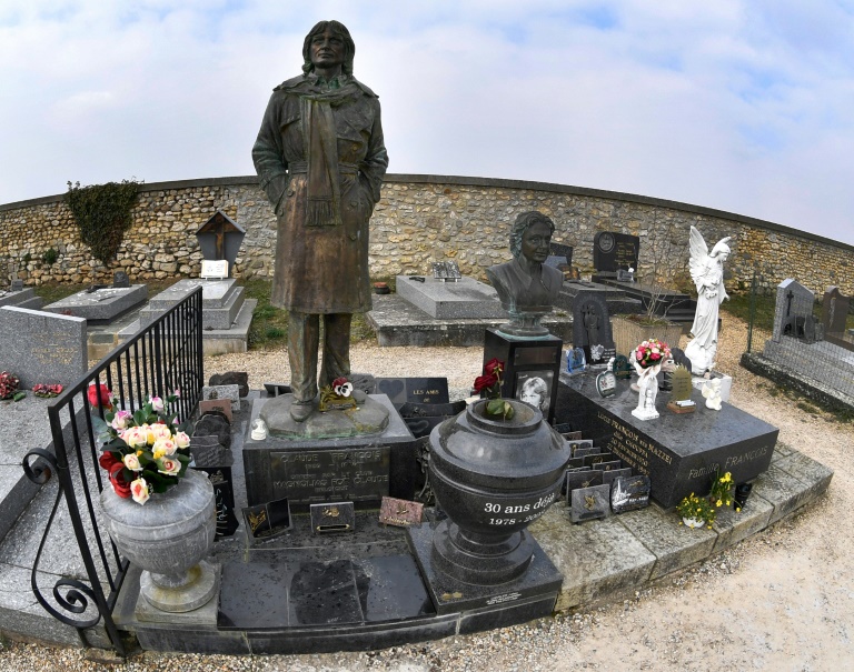 La tombe de Cloclo, ornée d'une statue de bronze à son effigie, croule sous les fleurs en ce dimanche printanier, à Dannemois. Quarante ans après sa mort, Claude François suscite toujours autant l'admiration malgré une image controversée.