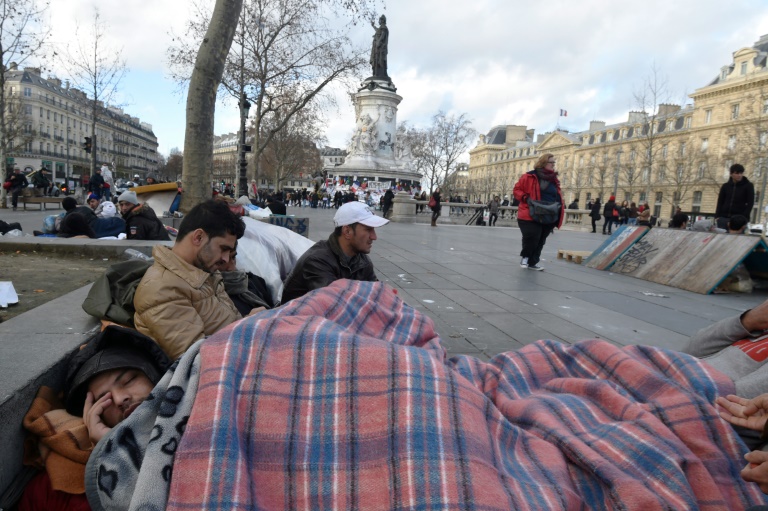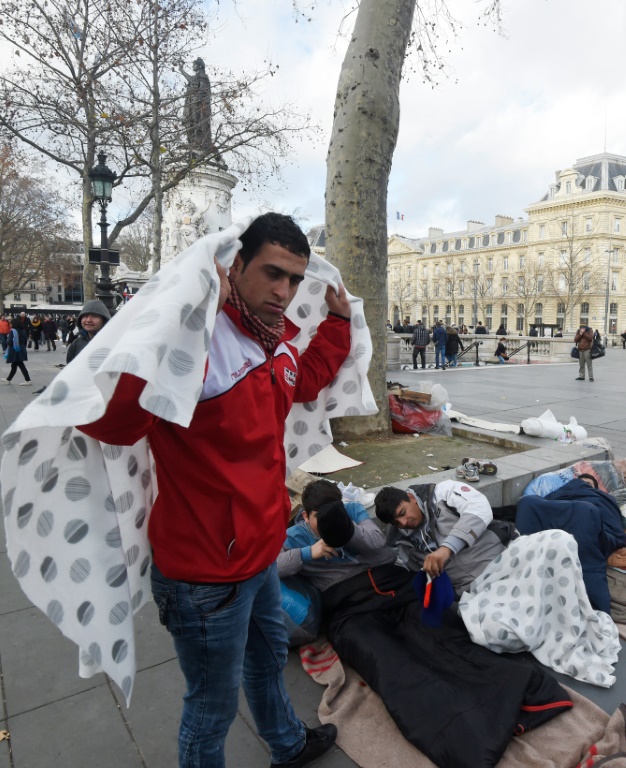 Il est 09H00, place de la République à Paris, quand, entre le bruit des voitures et le défilé de gens qui rendent hommage aux victimes des attentats, une centaine de migrants venus la plupart d'Afghanistan s'éveillent.