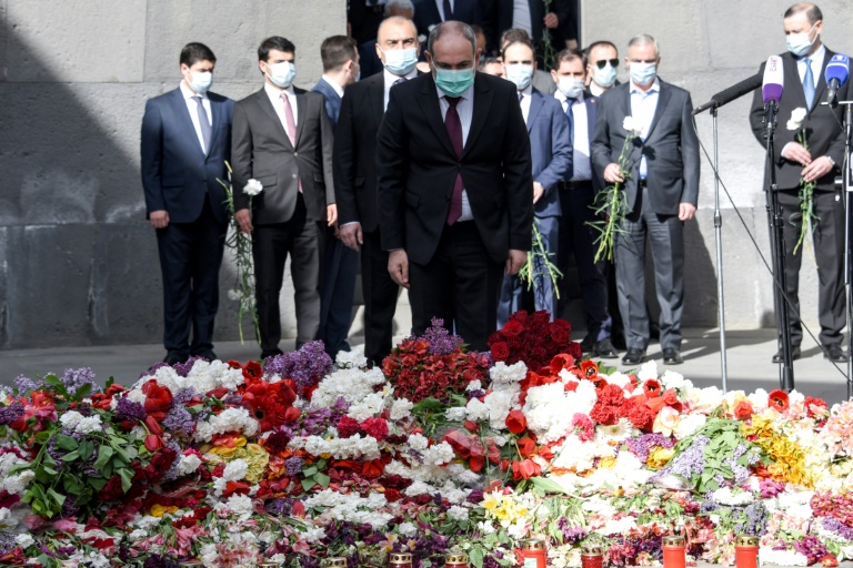 La foule s'est rendue depuis le centre-ville de la capitale jusqu'au mémorial dédié aux victimes de ce que l'Arménie, une trentaine de pays du monde et une communauté d'historiens qualifient de génocide, un terme rejeté avec véhémence par la Turquie. Des militaires, des dignitaires religieux, des femmes avec des enfants et les autorités du pays, dont le Premier ministre Nikol Pachinian, sont venus se recueillir près de ce mémorial surplombant Erevan, comme c'est la tradition en Arménie tous les 24 avril, jour du début des massacres en 1915.