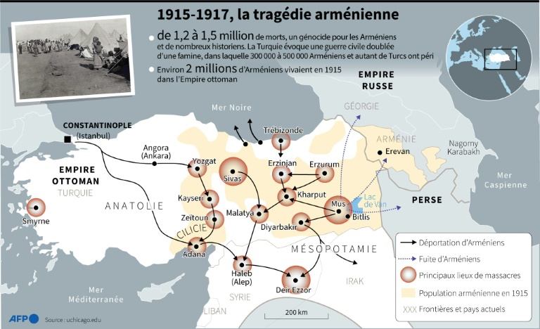 Samedi, le président américain Joe Biden devrait aussi reconnaître ces massacres d'Arméniens comme un génocide, un geste qui risque d'aggraver davantage les tensions entre Washington et Ankara, membre de l'Otan. Selon les estimations, entre 1,2 million et 1,5 million d'Arméniens ont alors été tués par l'Empire ottoman.