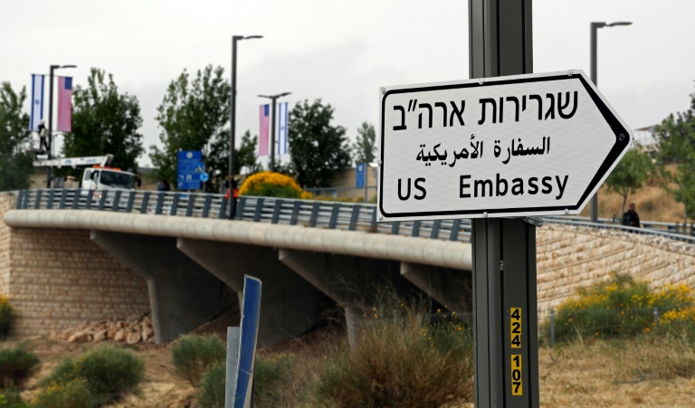 Des ouvriers en chasuble orange juchés sur des échelles ont accroché en hauteur dans les rues autour du site les panneaux indiquant "Ambassade des Etats-Unis" en hébreu, en arabe et en anglais, a constaté un photographe de l'AFP. Rompant avec des décennies de diplomatie américaine et de consensus international, le président américain Donald Trump a annoncé le 6 décembre la reconnaissance de Jérusalem comme capitale d'Israël et le transfert de l'ambassade actuellement située à Tel-Aviv.