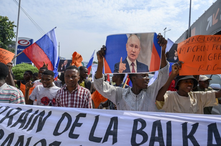 Quelques dizaines de jeunes, brandissant des drapeaux russes, avaient déjà manifesté mercredi à Kinshasa contre la venue du président français, avec l'intention de se faire entendre de nouveau samedi.
