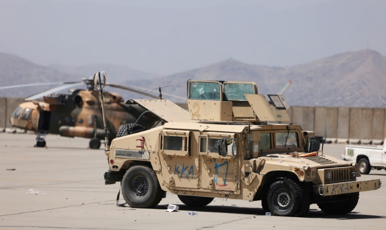 Les forces de sécurité afghanes se sont, elles, effondrées en dépit des milliards de dollars investis ces dernières années notamment par Washington. Dans l'un des sites militaires afghans de l'aéroport de Kaboul, des dizaines d'avions et de véhicules, intacts ou endommagés, sont gardés par les forces du nouveau régime installées un poste de contrôle fait de parapluies et de chaises métalliques. Des uniformes des forces du gouvernement déchu traînent à même le sol aux côtés d'hélicoptères criblés de balles. Un combattant taliban se tient devant les fenêtres fermées d'un petit avion sans portes. "Boum, boum, boum", lance-t-il à haute voix, en souriant.