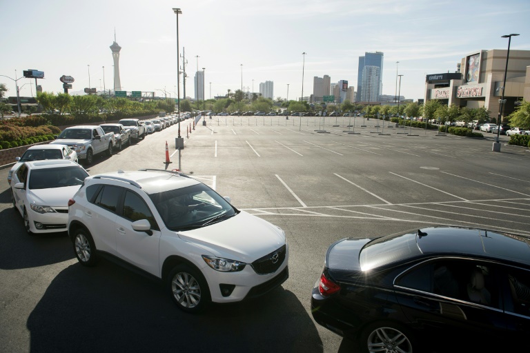 Chaque semaine, une file de voitures longue de dix kilomètres s'étire pour pouvoir accéder à cette banque alimentaire temporairement établie dans le Palace Station, fermé comme tous les autres casinos de Las Vegas en raison de la pandémie de coronavirus. C'est la raison pour laquelle Michelle Manning est arrivée si tôt, en compagnie de sa soeur.